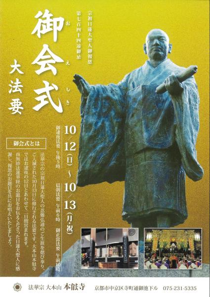 宗祖日蓮大聖人第744遠御忌御会式大法要が10月12日・13日京都大本山本能寺において奉修されます。